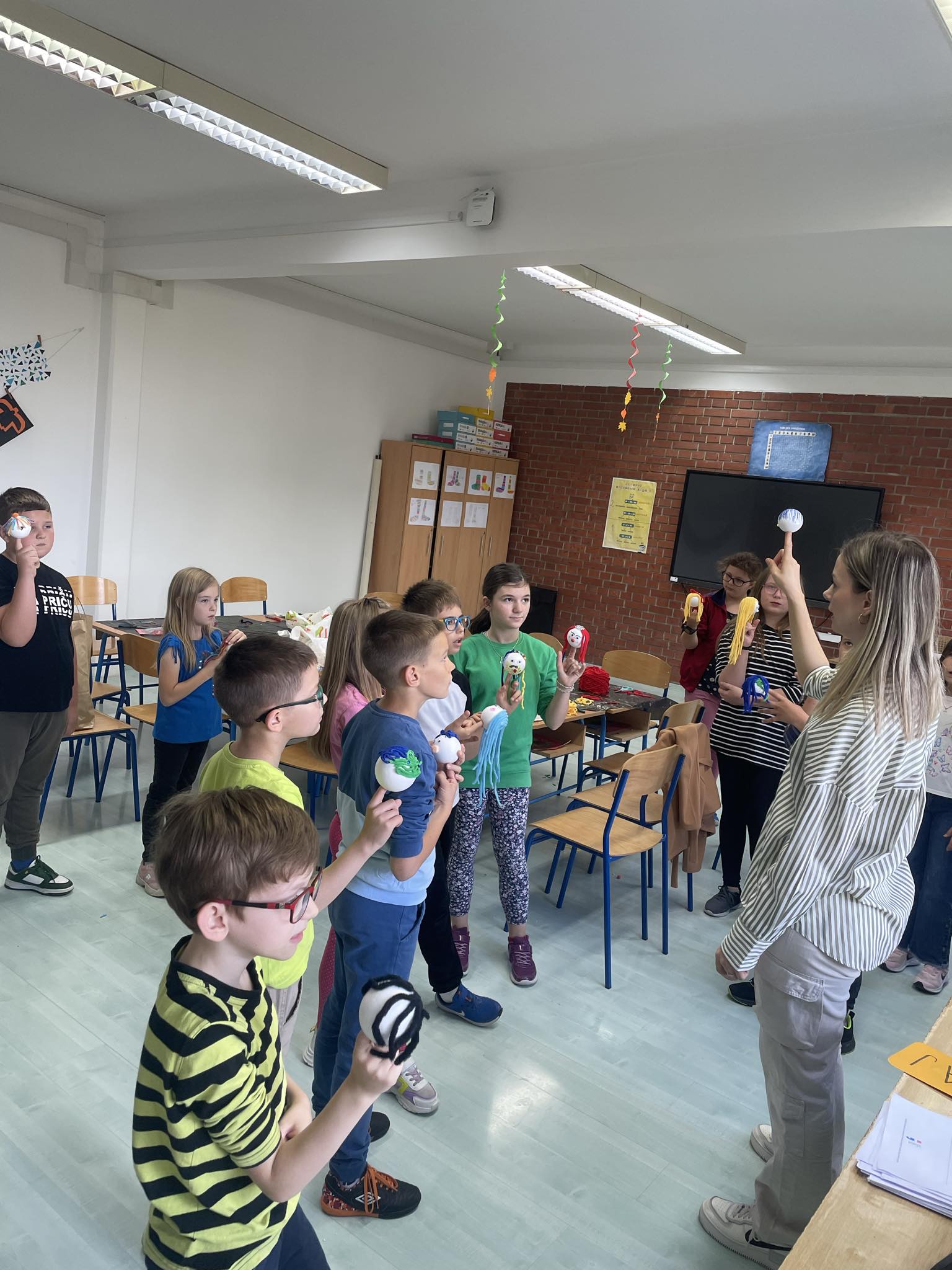 Kroz 90 minuta učenici Osnovne škole Lipovac izrađivali su svoju ginjola lutku, učili tehnike dijafragmalnog disanja, zagrijali tijelo te naučili osnovu animacije ginjola.